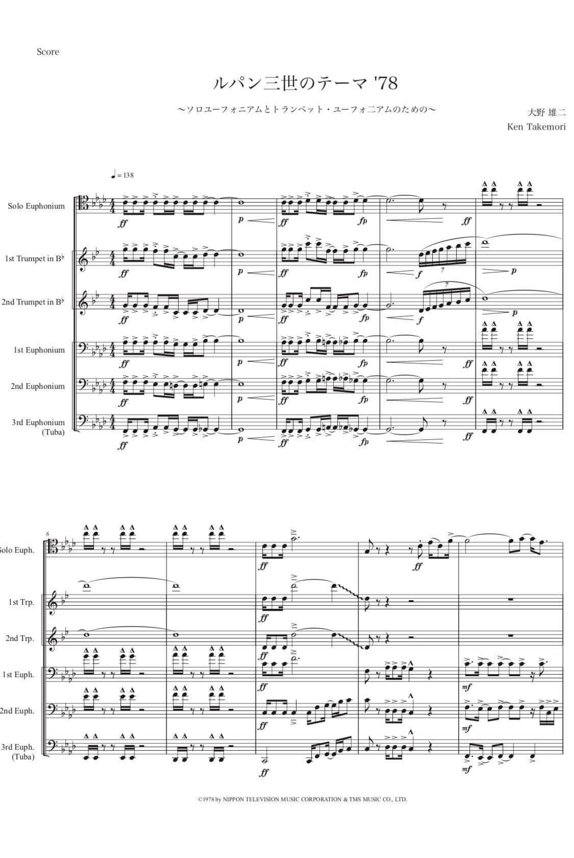 楽譜 ルパン三世のテーマ 78 金管8重奏 大野 雄二 アンサンブル譜 ムジカ エテルナ 楽譜 Elise